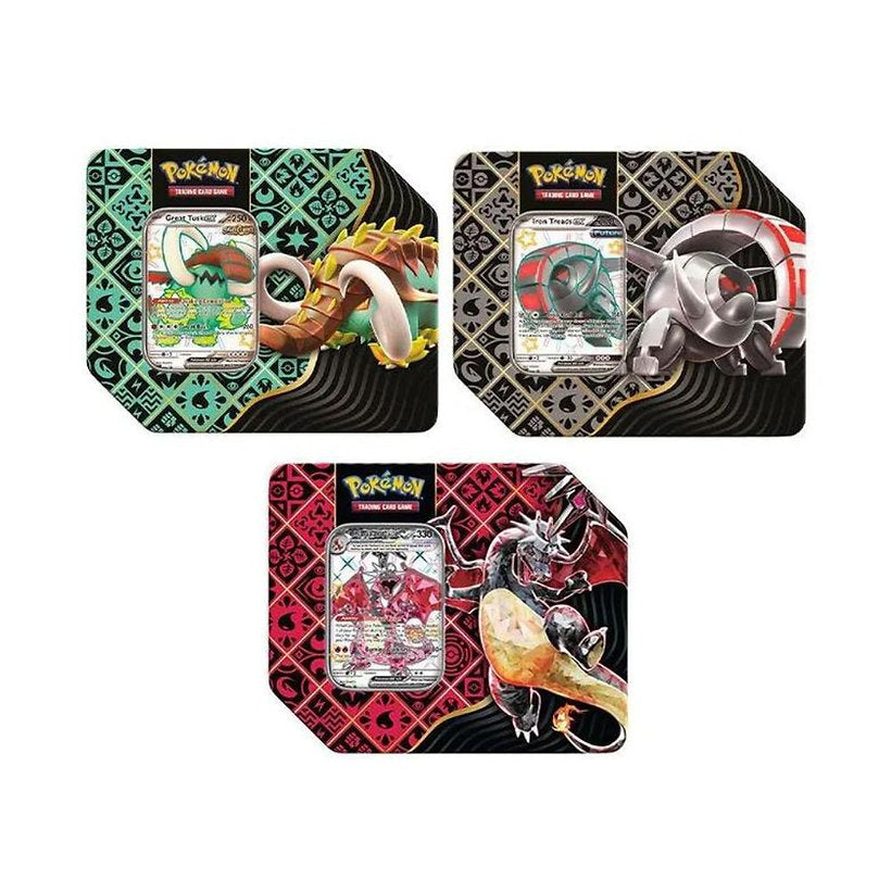 Behold the breathtaking power of Shiny Pokémon ex who transcend the boundaries of time and type! With this tin, choose the iron-clad determination of Iron Treads ex as a Future Pokémon, then discover even more awesome cards in Scarlet & Violet—Paldean Fates booster packs!
